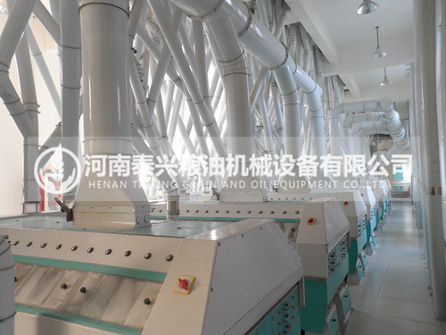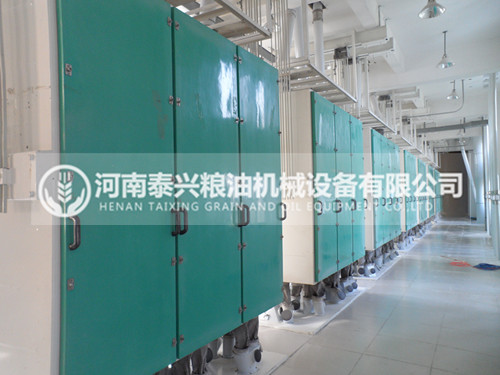 300吨级面粉机组是我厂结合国内实际情况,由小麦面粉设计研发中心走创新之路设计而成的大型钢架式成套面粉机组。该设计突破了传统设计的局限性,具有国际领先水平。清理工艺采用三筛、两打、二去石、一洗麦、二磁选等多道工序;制粉采用4-5道皮磨,6-7道心磨,2-3道渣磨,并配有清粉机、打麸机、撞击,松粉等辅助设备,磨粉机采用先进的气压式复式磨,制粉工艺先进,轻研细磨,粉路长,面粉质量高,可生产多种等级粉和专用粉。钢架式结构投资少,建效快,建设周期短,占地面积小,我公司同时提供前期设计,生产,后期安装,调试,技术培训,技术咨询的一条龙服务。