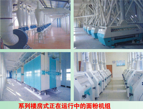 大型楼房式面粉加工设备其制粉设备先进,工艺组合完备、分级效果好、面粉质量高、产量高,出粉率高,操作维修简便,面粉厂档次高、规模大,可以生产等级粉.专用粉,还可以精标联产,本设备特别适合于大中型面粉厂。